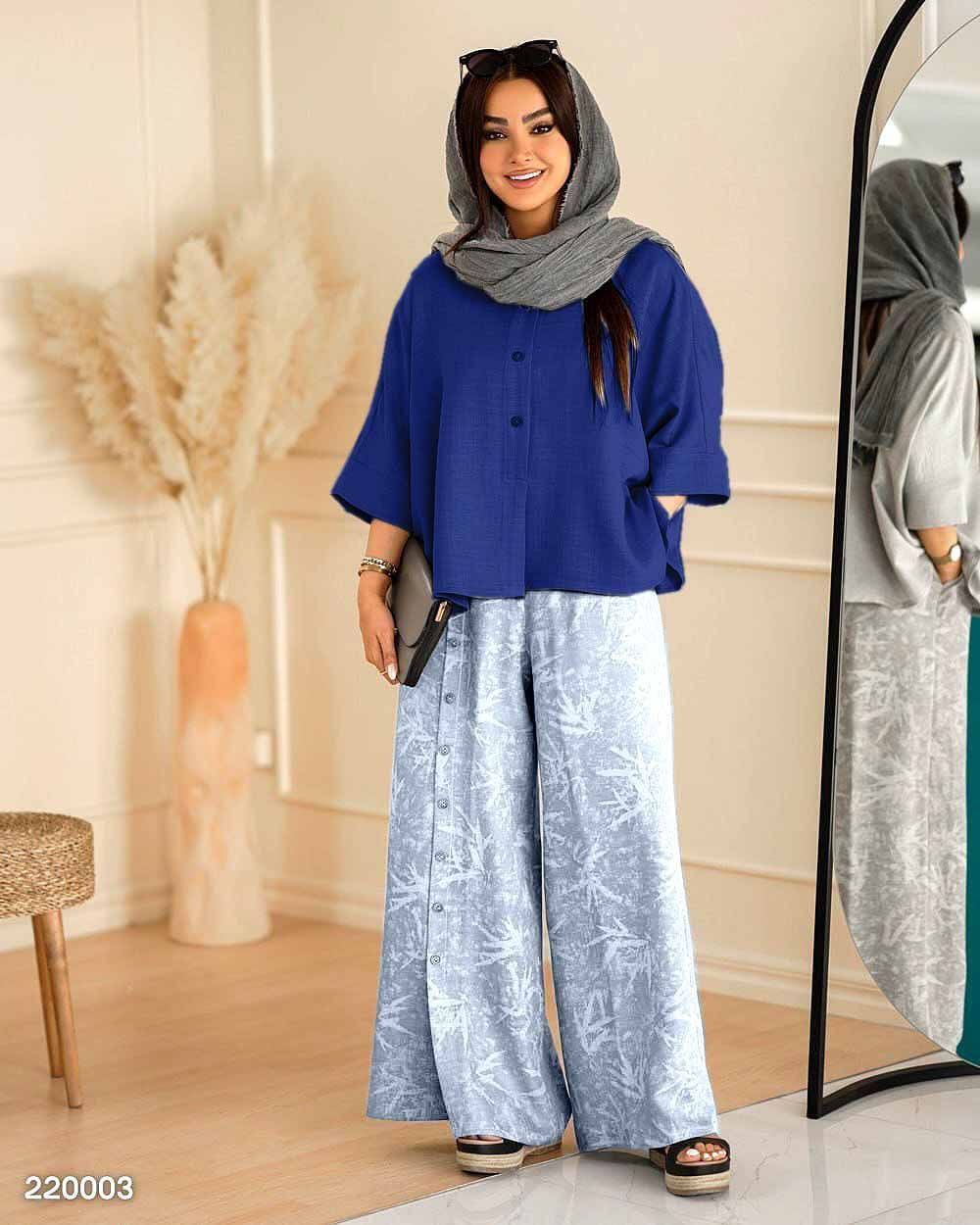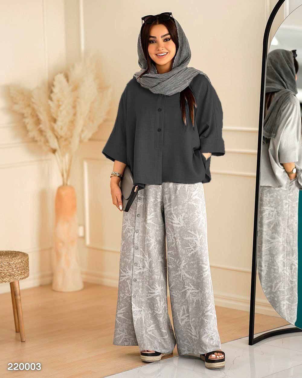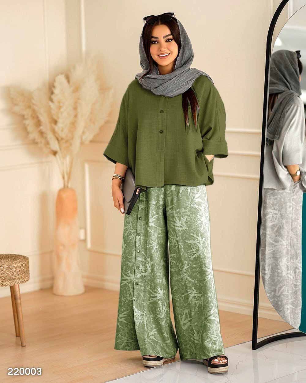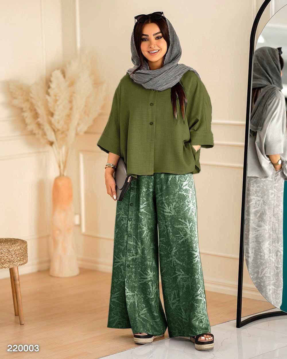 🏷 شناسه: #43612👚 نام: ست گازوییلی مهربانو👗 قد 80دورسینه 126استین از کنار یقه 55بازو 50شلوار 100ران 68جلو دکمه جیب شلوار کاربردی شییییک🧵 جنس: شانتون🖌 رنگ بندی: ابی،ابروبادی - ابی،راه،راه - زرشکی - سبز - طوسی - مشکی،سدری - مشکی،طوسی - نسکافه،ابروبادی - نسکافه،راه،راه⚜️ سایز ها: فری38تا48ریز💰 قیمت : ۷۴۸۰۰۰ تومان