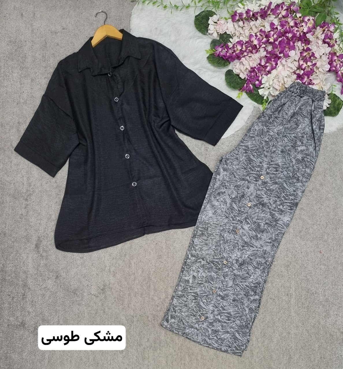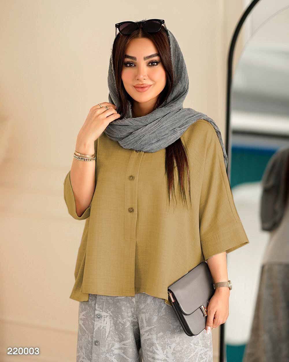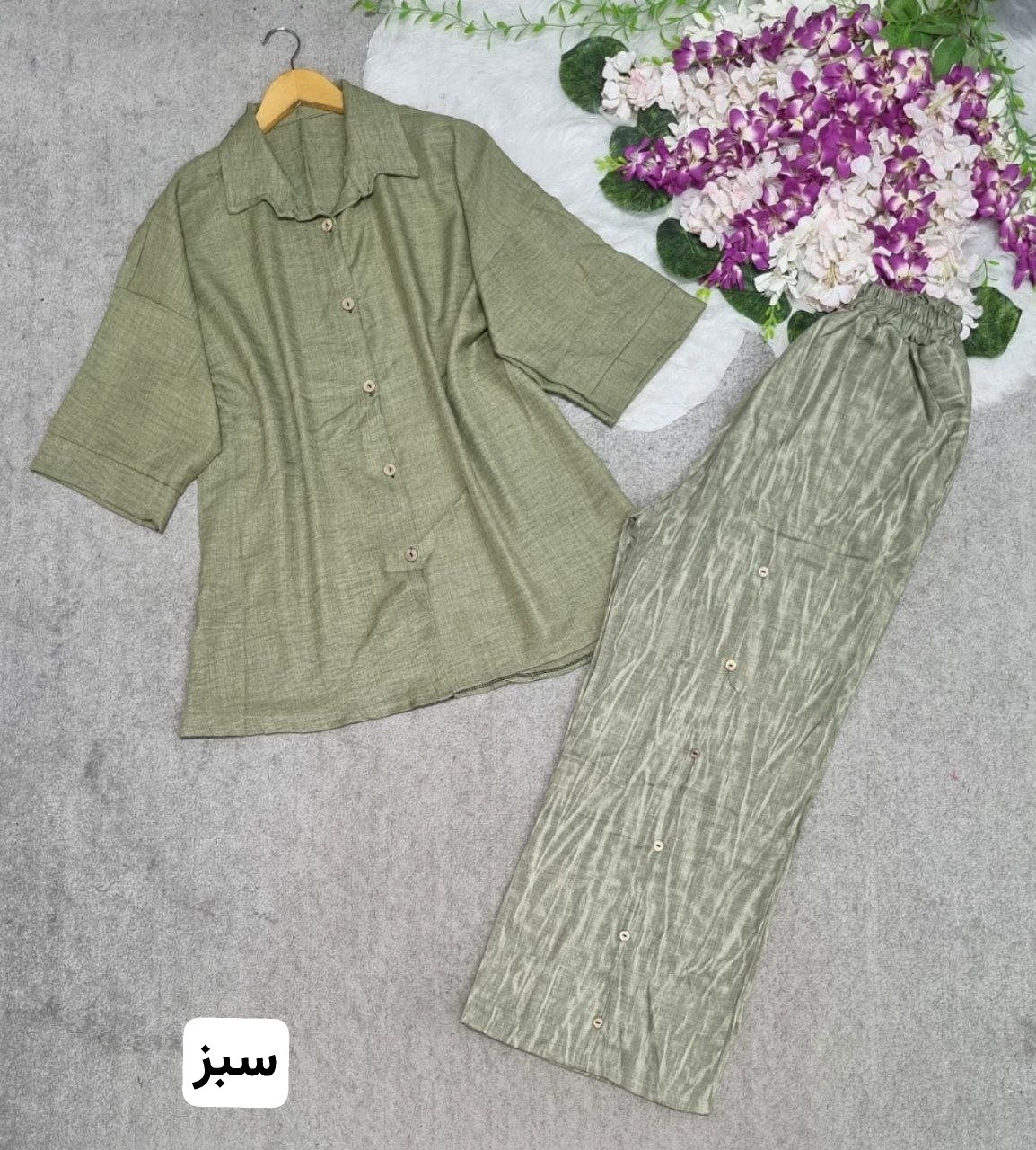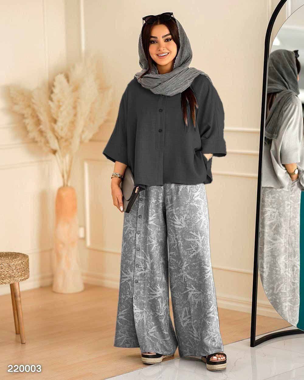 🏷 شناسه: #43612👚 نام: ست گازوییلی مهربانو👗 قد 80دورسینه 126استین از کنار یقه 55بازو 50شلوار 100ران 68جلو دکمه جیب شلوار کاربردی شییییک🧵 جنس: شانتون🖌 رنگ بندی: ابی،ابروبادی - ابی،راه،راه - زرشکی - سبز - طوسی - مشکی،سدری - مشکی،طوسی - نسکافه،ابروبادی - نسکافه،راه،راه⚜️ سایز ها: فری38تا48ریز💰 قیمت : ۷۴۸۰۰۰ تومان