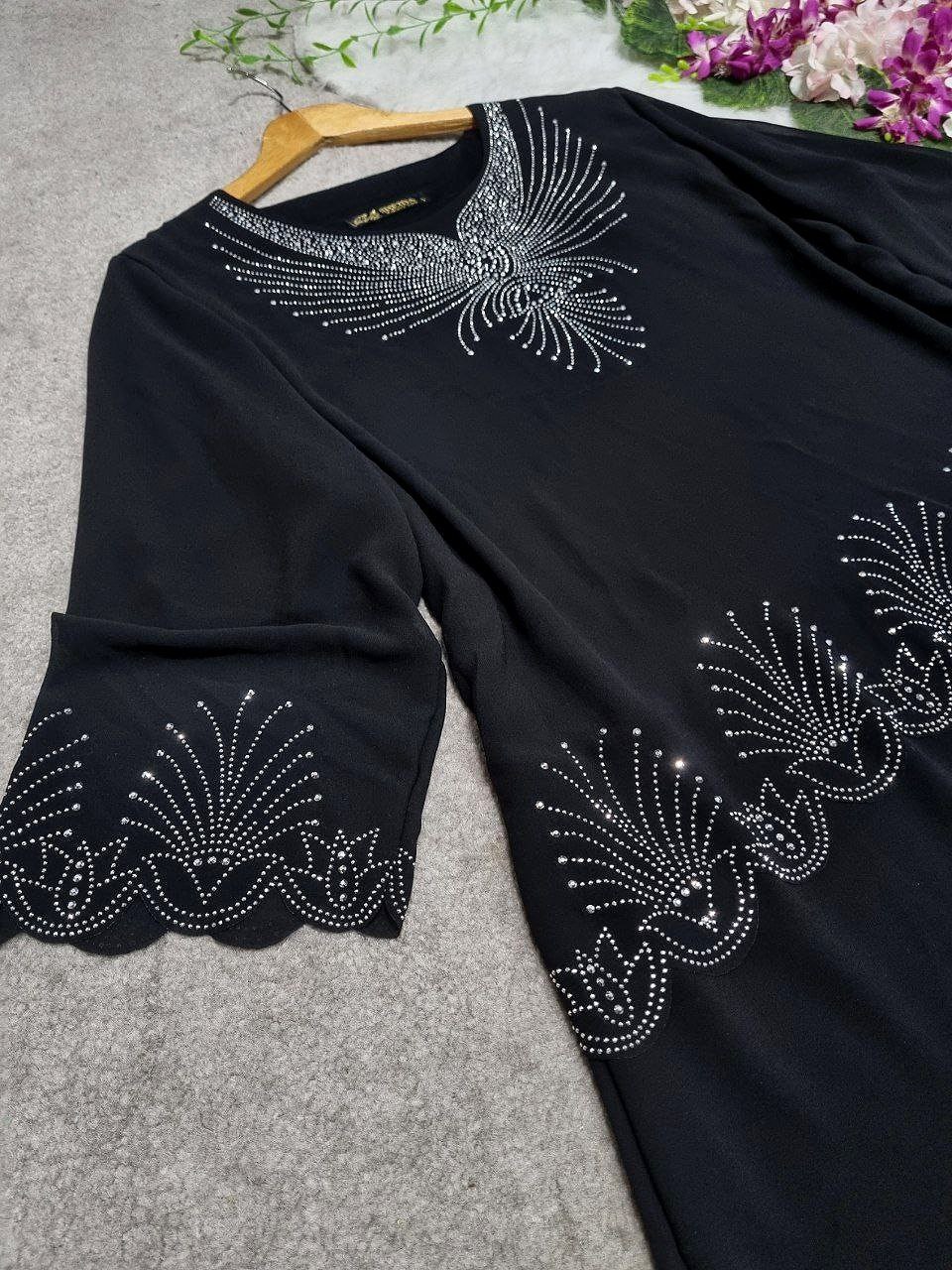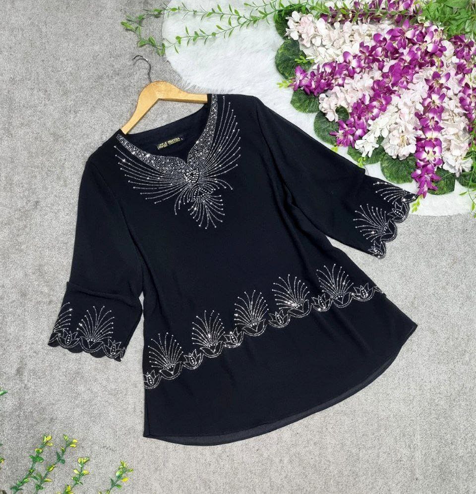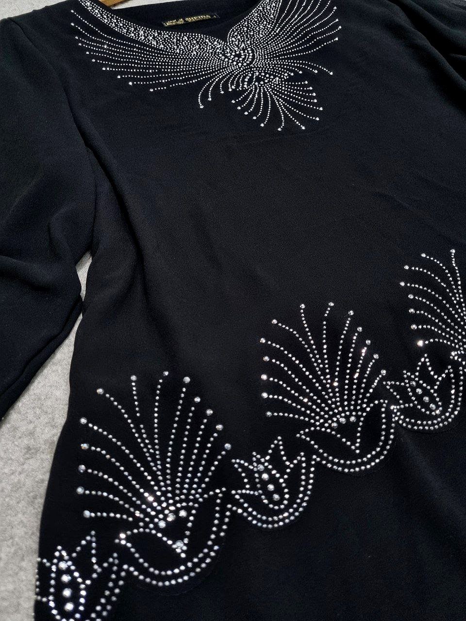 شومیز مجلسی زنانه🏷 شناسه: #43621👚 نام: شومیز مینوس👗 سایزها : 1(40تا48) , 2(48تا52ریز) , سایز1قد 81دورسینه 116استین 60بازو 40سایز2قد 82دورسینه 120استین از کنار یقه 62بازو 44نگین کاری فوق العادههههاستر دارتضمین دوخت و کیفیت🧵 جنس: کرپ حریر درجه1