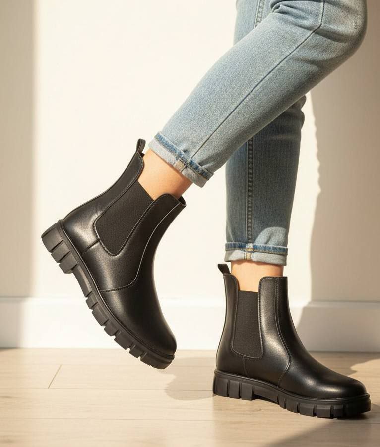 بوت زنانه ، نیم بوت زنانه ، کفش بوت زنانهبغل کش سایزبندی37.38.39.40رنگبندی مشکیزیره یخ شکنرویه چرم شیک و خوشپاجدید
