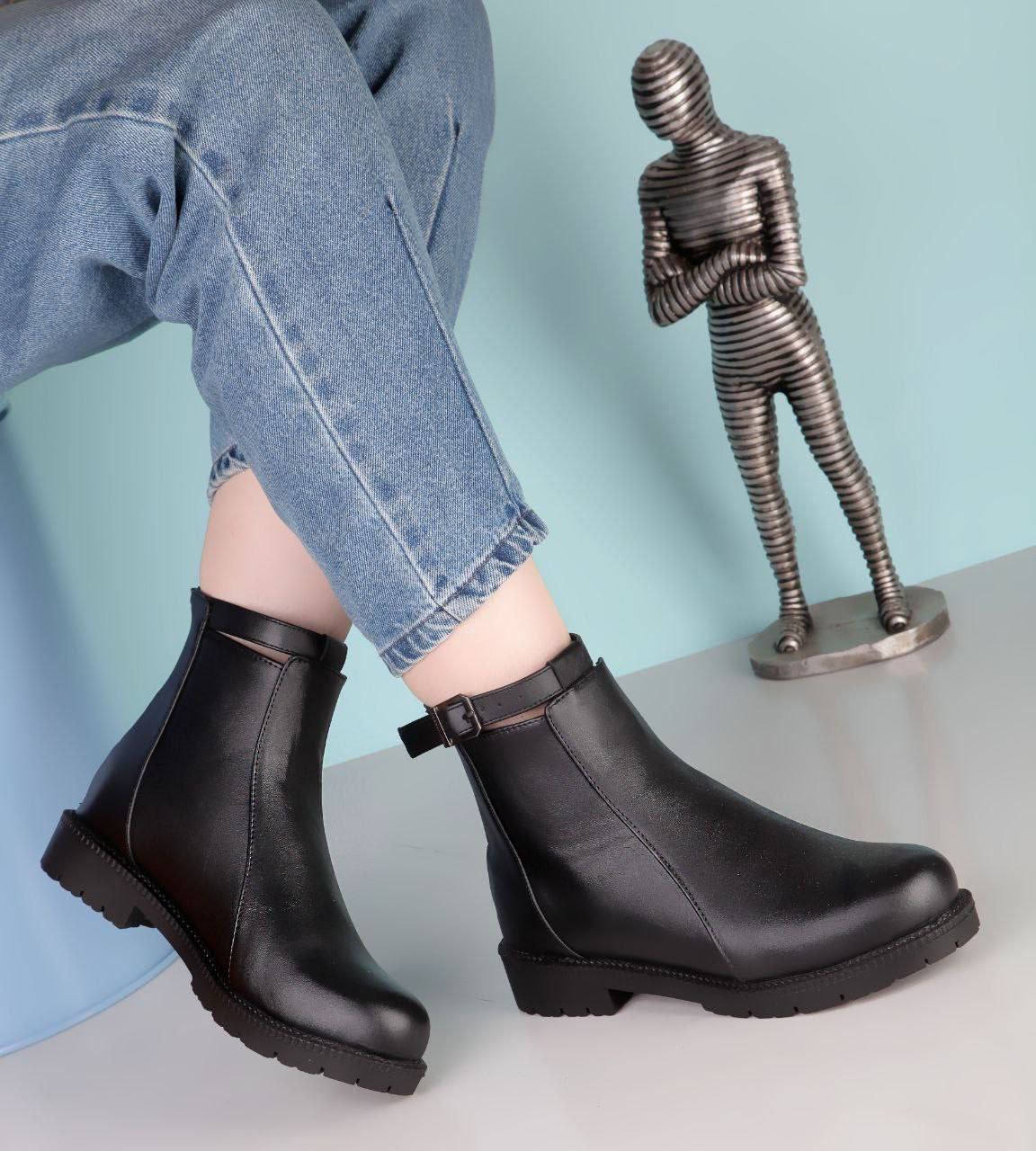 بوت زنانه ، کفش نیم بوت زنانه بوت دورمچی کمربندیسایزبندی 37.38.39.40رنگبندی مشکیزیره یخ شکنرویه چرم صد درصد مواد پی یوشیک و خوشپاسبک و راحتجدیدباضمانت قیمت ۹۴۸۰۰۰