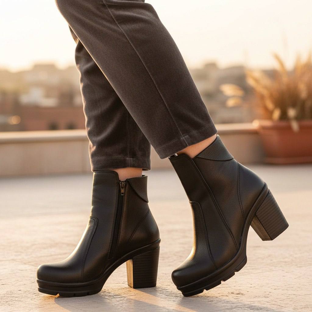 بوت زنانه ، نیم بوت زنانه ، کفش بوت زنانه مدل یقه دارسایزبندی37.38.39.40رنگبندی مشکی زیره پی یو رویه چرم و شرانک طبی و راحت شیک و خوشپاجدیدقیمت ۹۴۸۰۰۰