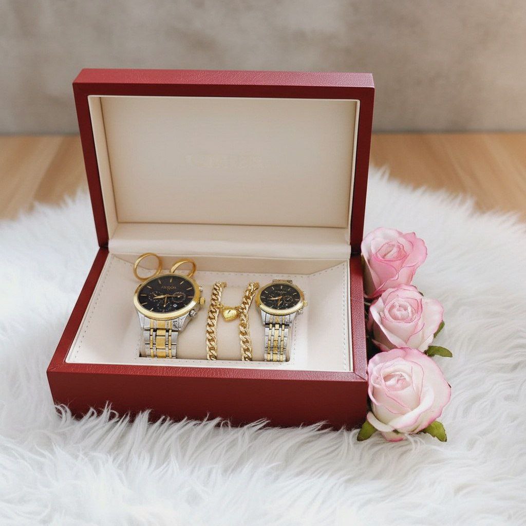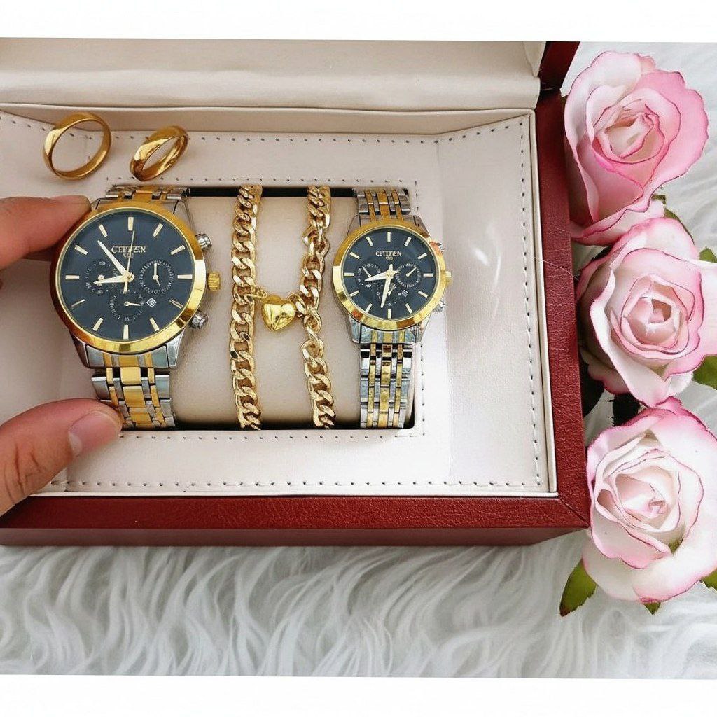پک ست زوج ساعت و دستبند و حلقه زنانه و مردانه ، پک ولنتاین 🆔 شناسه : #76267👚نام : پک کامل ست ساعت+ست دستبند +ست حلقه زنانه و مردانه باهم برند سیتیزن بنداستیل دارای تقویمکیفیت عالیدرجه یکطرح سه موتوره دارای جعبه کادویی بالشتک دار شش ماه گارانتی موتور ⬅️ تمامی محصولات قبل از ارسال تست میشوند👗فول کیفیت 😎❤️👗یه ست خوشگل که باید هر زوجی داشته باشه❤️😘👗کار فوق العاده حرفه ای ❤️👗..🧵جنس : بند استیل🖌 رنگ بندی : ست کامل داخل تصویر - ⚜️ سایز ها : set - 💰 قیمت ست کامل داخل تصویر: ۱۵۸۵۰۰۰ تومان