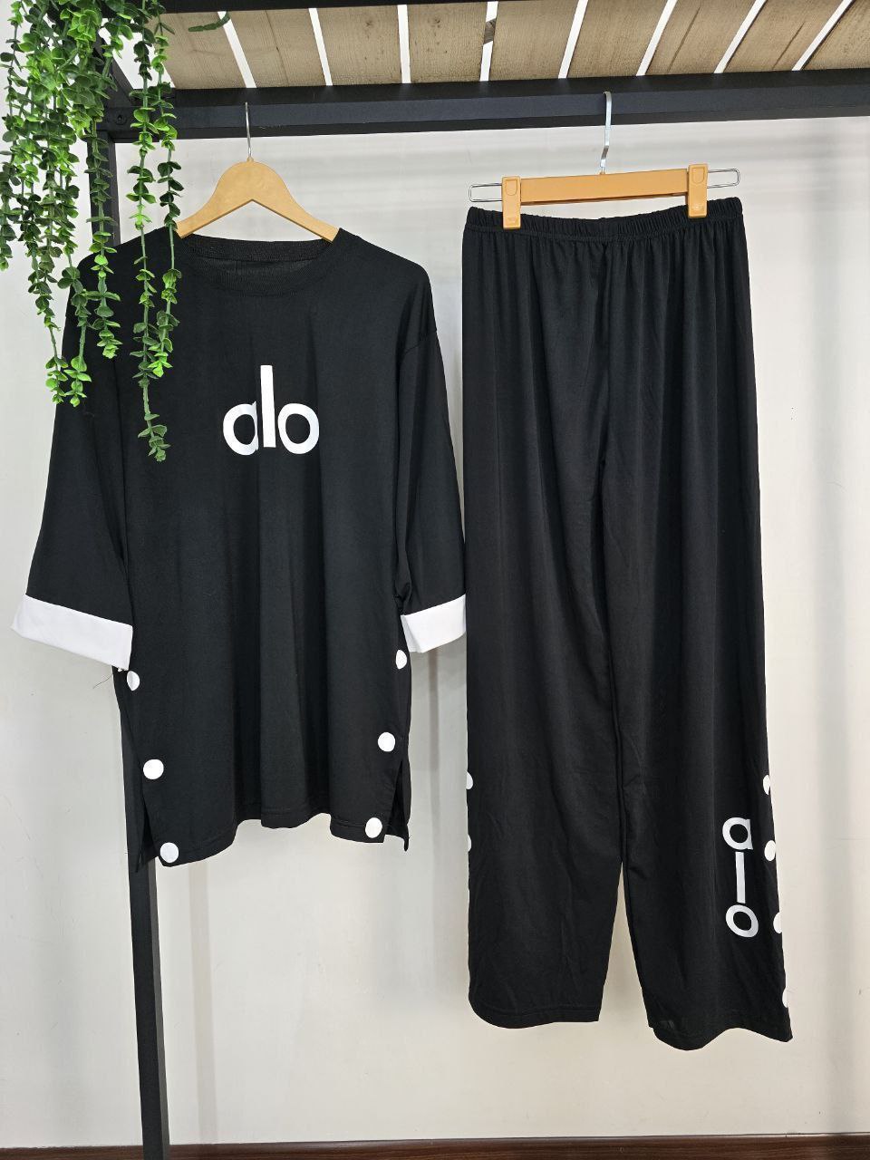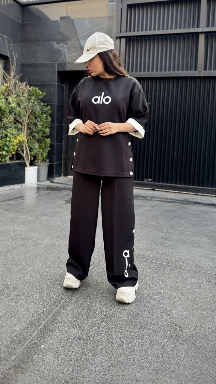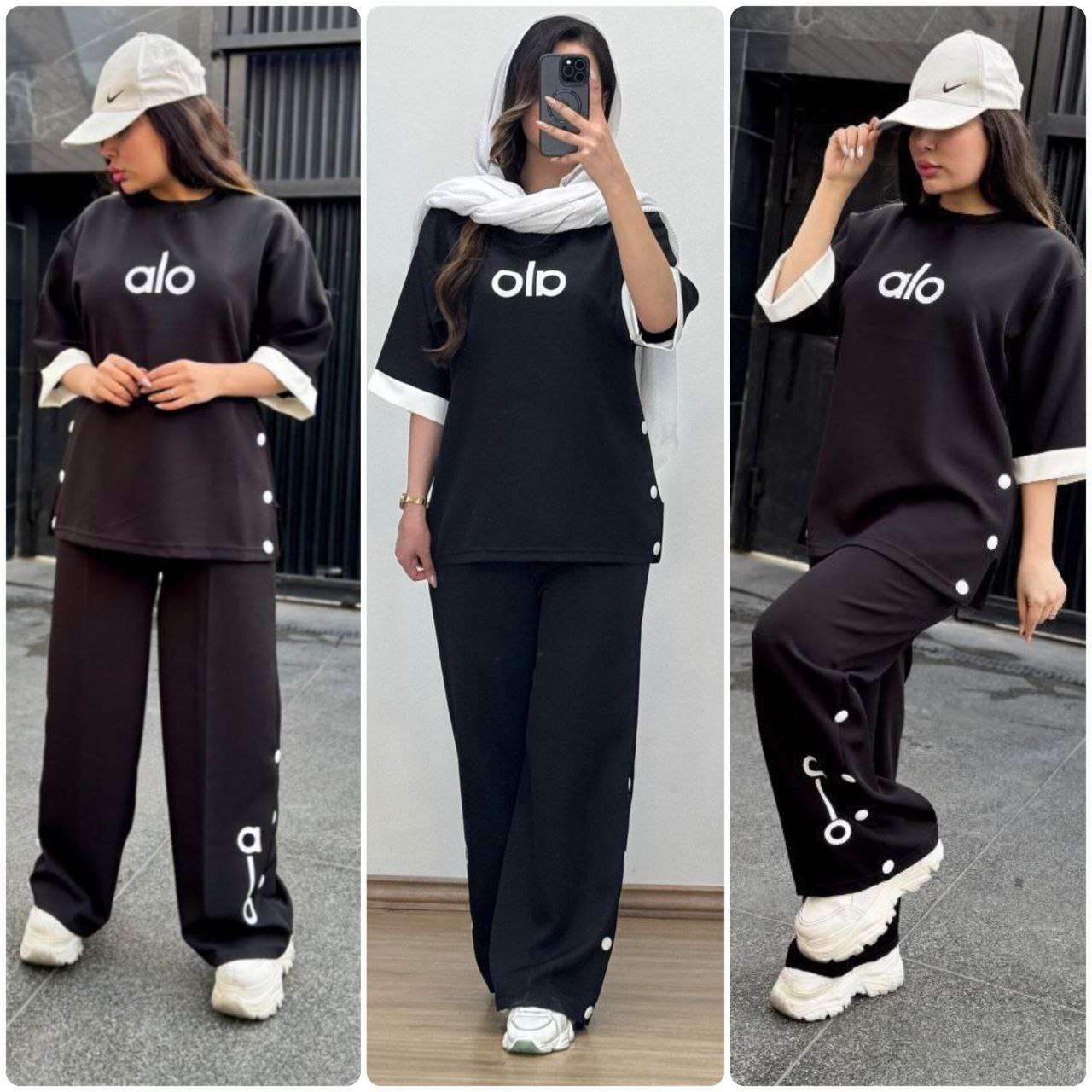 ست تیشرت و شلوار زنانه ، 🌸 شناسه : #87547🌸 نام : ست « alo »🌸 جنس : پنبه اسپان🌸 رنگ بندی : مشکی🌸 سایز ها : فری 38-50✅ قدتیشرت 70✅ قد شلوار 103✅ دور سینه114🌸 قیمت : ۵۴۸۰۰۰