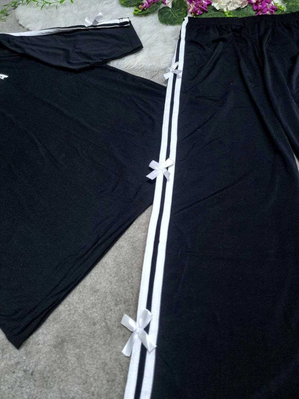 ست تیشرت و شلوار زنانه ، ست لانگ و شلوار عروسکی زنانه🏷 شناسه: #43286💎 نام: ست تیشرت شلوار پاپیونی📋 توضیحات: قد 72دورسینه 116استین از کنار یقه 51بازو 46شلوار 102ران 64فول کش💎 جنس: فلامنت نرم و لطیف فول کش💎 رنگ بندی: مشکی⚜️ سایز ها: فری38تا50💰 قیمت ۵۴۸۰۰۰