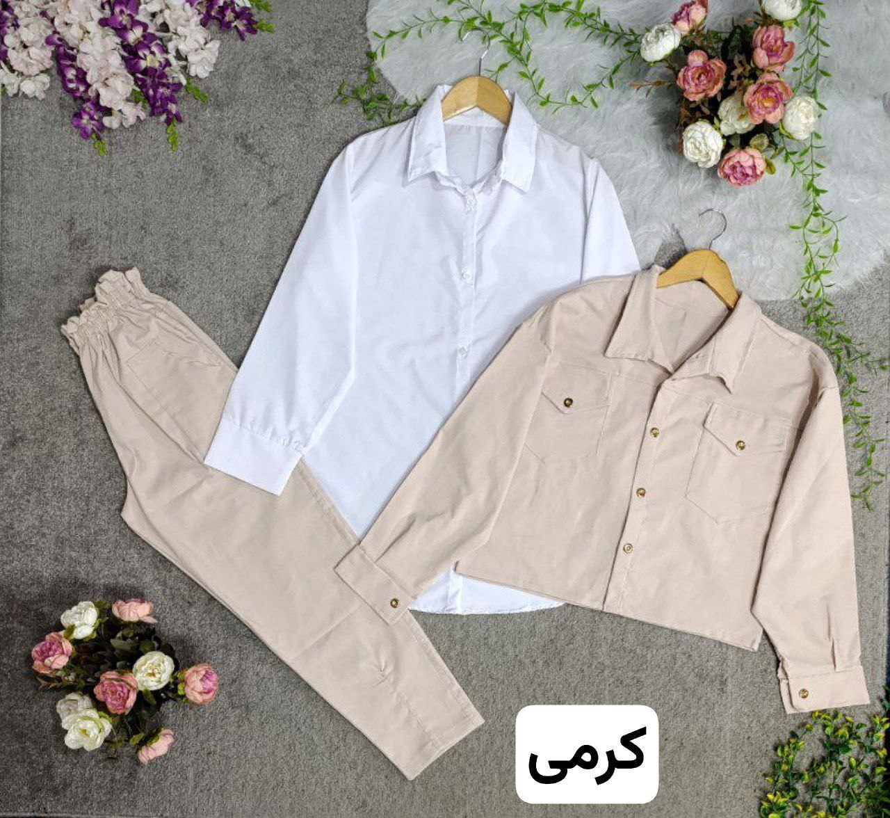 ست سه تیکه شومیز و کت و شلوار زنانه ، ست کراپ کت و شلوار و شومیز زنانه ، ست پاییزه زنانه 🏷 شناسه: #43274👚 نام: ست3تیکه متین👗 قد کت 52دورسینه 108استین از کنار یقه 71بازو 42قد شومیز 78دورسینه شومیز 112استین از کنار یقه 68بازو 40شلوار 96ران 543تیکه شاملشومیزکت شلوار🧵 جنس: شومیز داکرونکت شلوار کتان🖌 رنگ بندی: سدری - مشکی - نسکافه،تیره - نسکافه،روشن - کرمی - یشمی⚜️ سایز ها: فری36تا46ریز💰 قیمت ۷۴۸۰۰۰