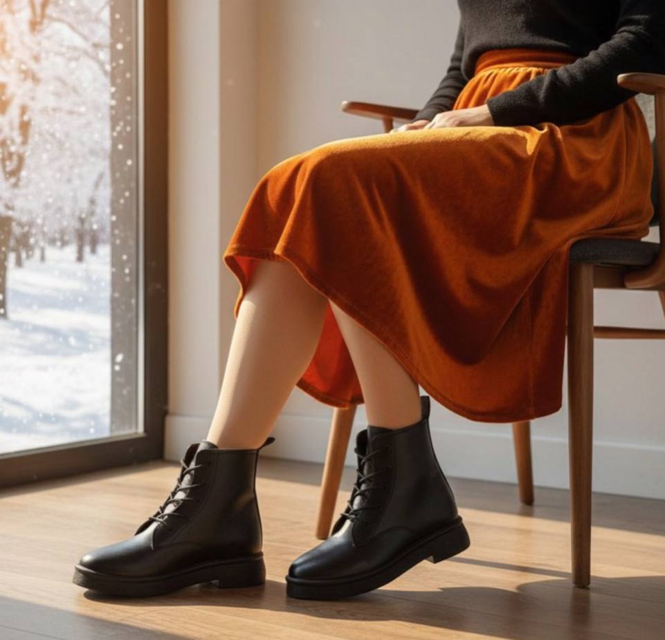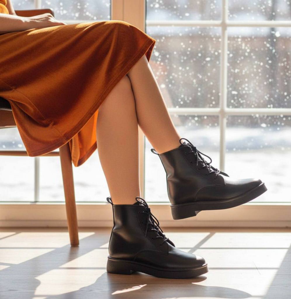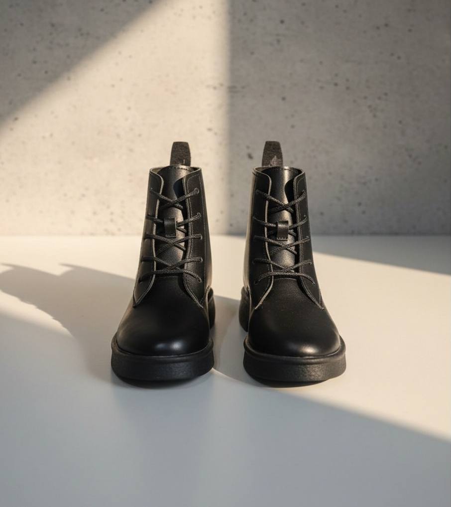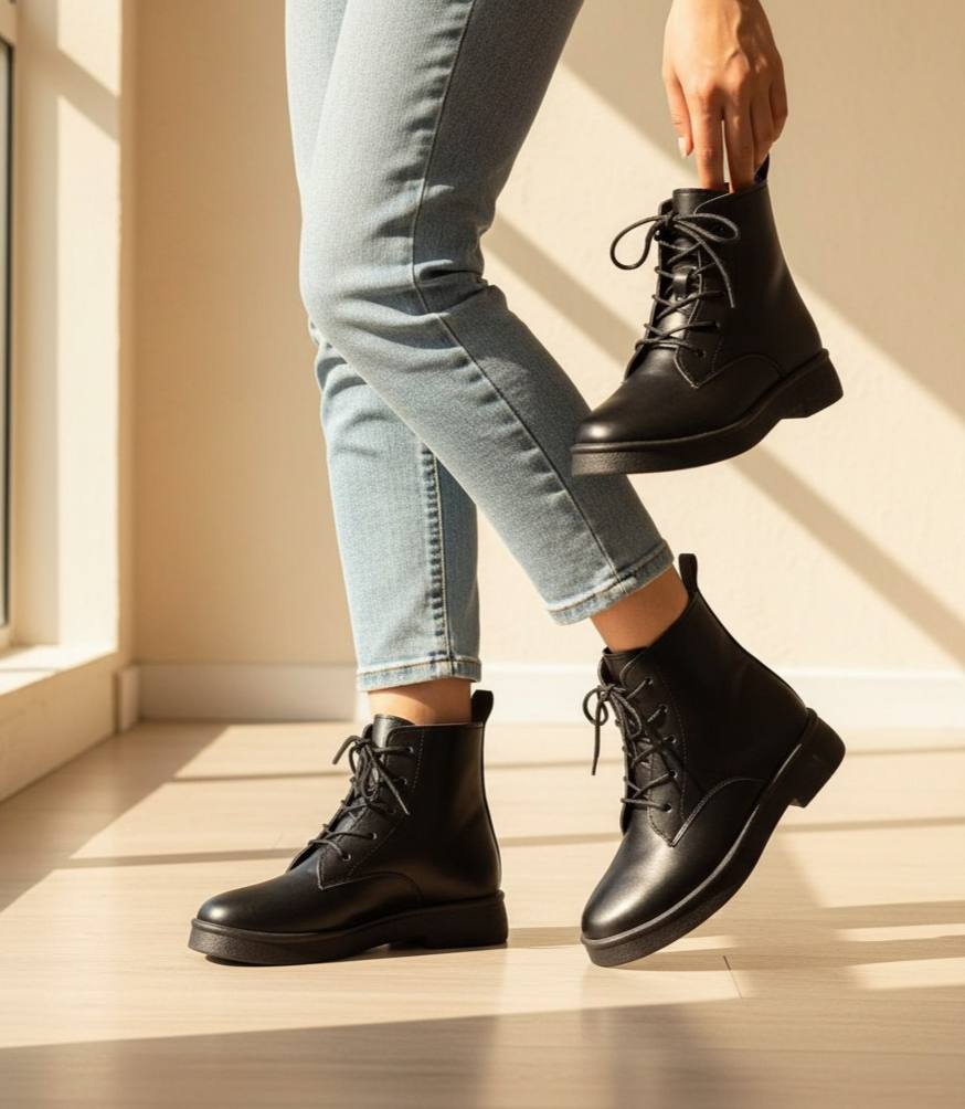 نیم بوت زنانه ، کفش بوت زنانه نیم بوت مینیمال بندیسایزبندی37.38.39.40رنگبندی مشکیزیره پلیمررویه چرم شیک و خوشپاجدیدقیمت ۶۴۸۰۰۰