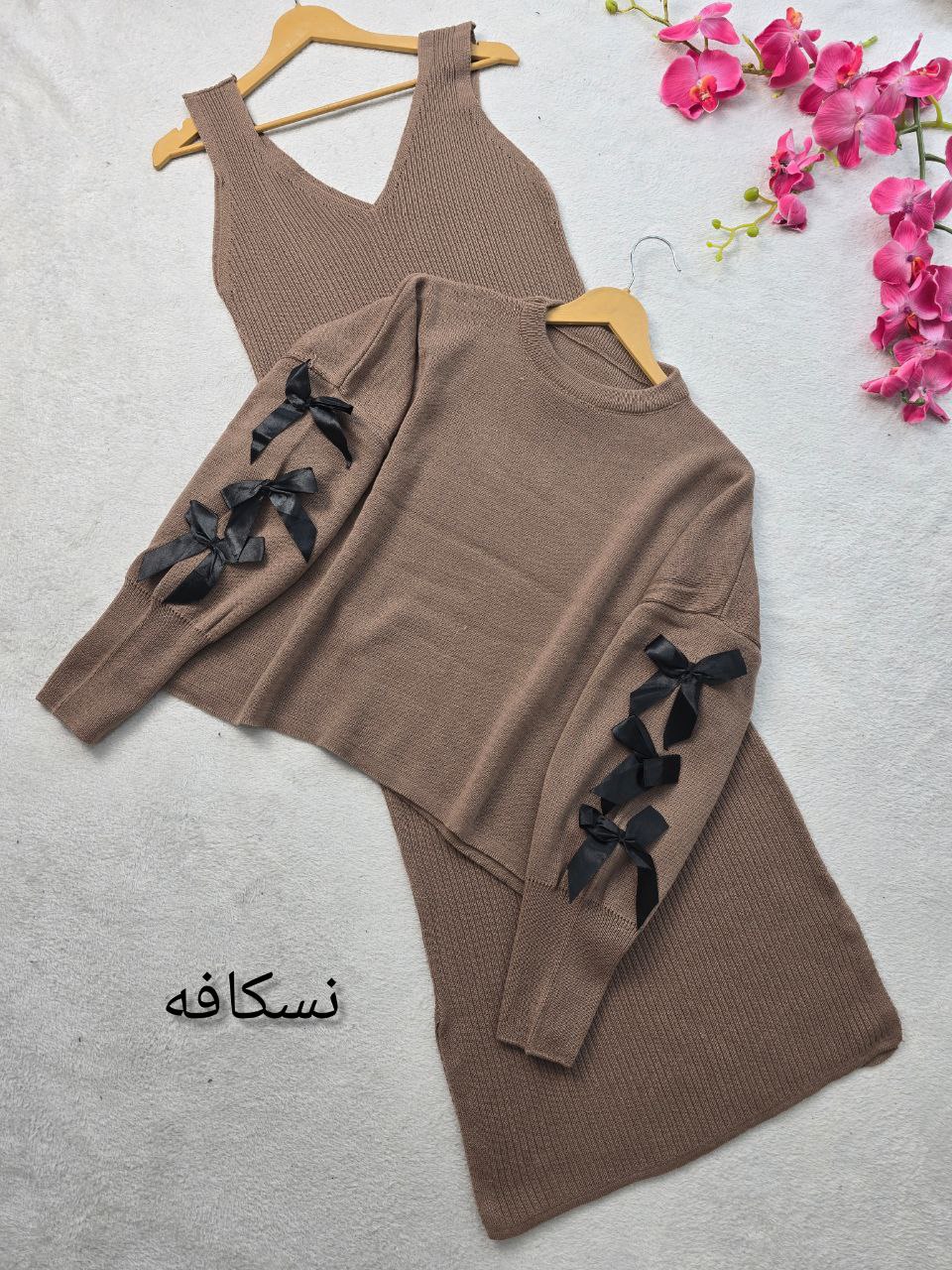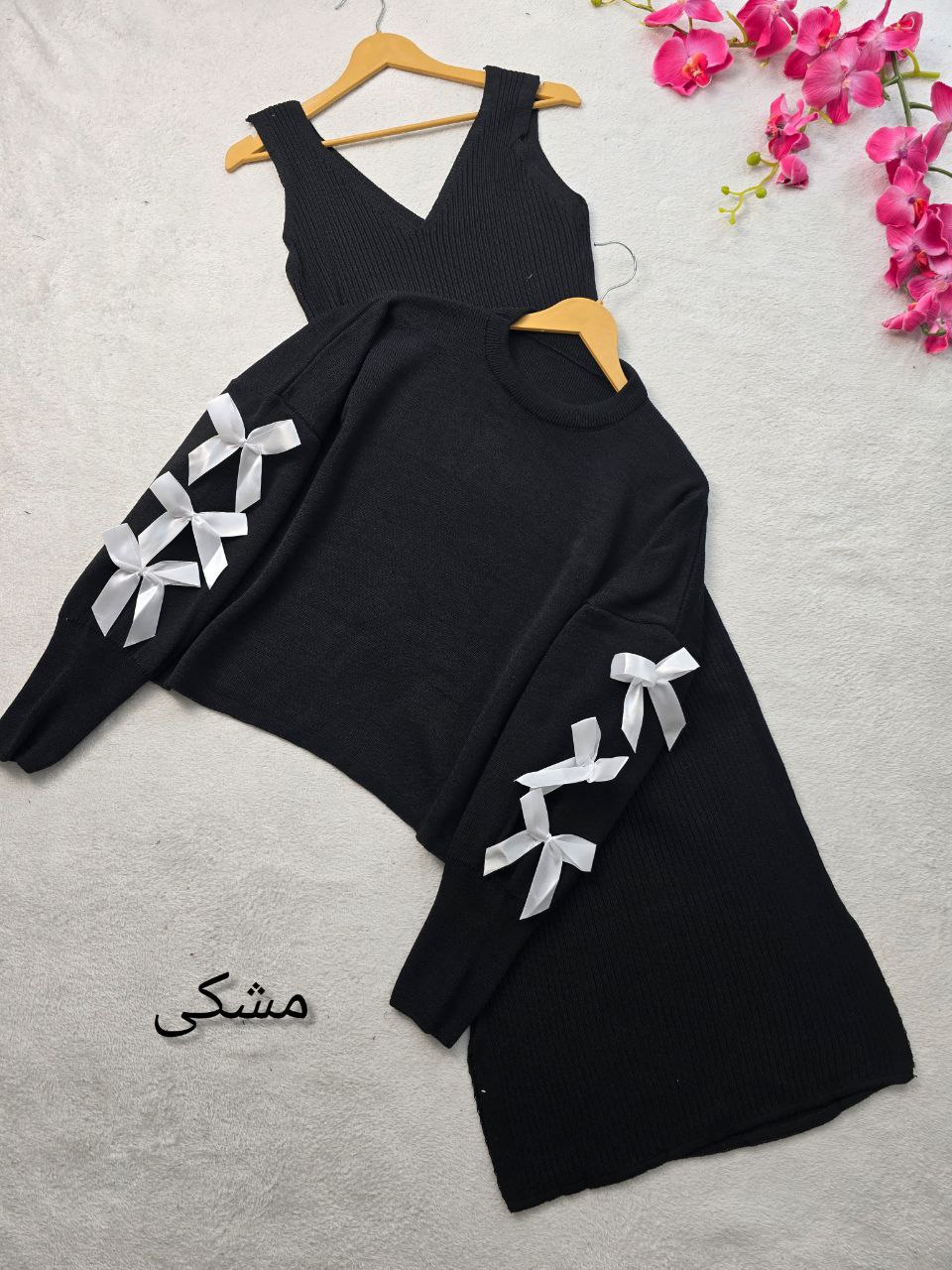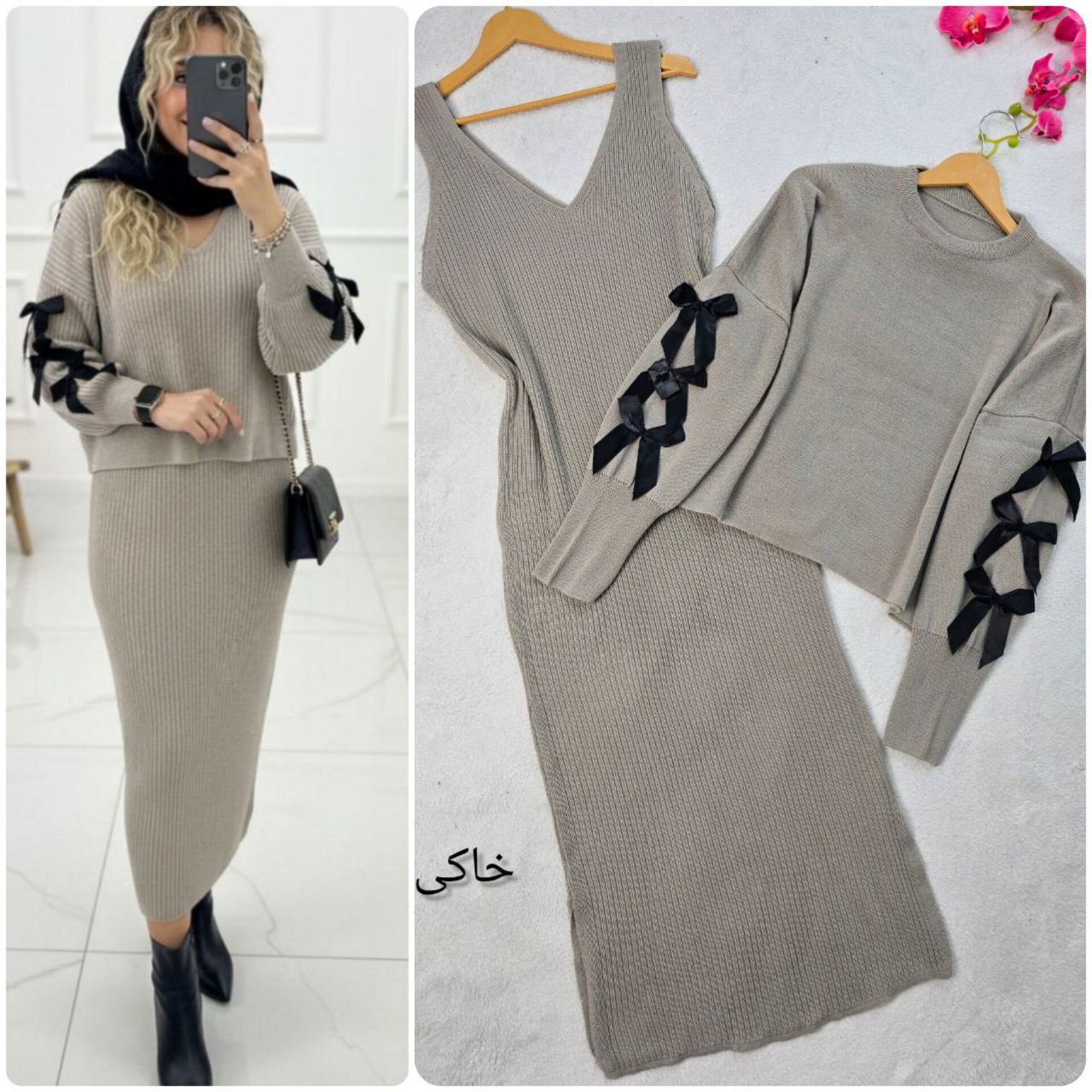 ست بافت پینترستی شومیز و سارافون زنانه ، ست شومیز و سارافون پاییزه زنانه 🍁 شناسه : #95011🍁 نام : ست پروانه(آستین پاپیون)🍁 جنس : بافت دوبل🍁 رنگ بندی : خاکی, زرشکی, سورمه, کرم, مشکی, نسکافه🍁 سایز ها : فری 36-46قیمت : ۸۹۸۰۰۰ تومانقد رویه 55قد آستین از یقه 83دور سینه 162( حالت نیمه کیمانو)قد سارافون 125دو. سینه و باسن سارافون فول کش تا115 ✅ این ست دلبرمون از دل پینترست درومده ،پینترستی ترین ستی که دیدی اینه ، ست دو تکه سارافون و رویهلباس روشو میتونی حتی با شلوار یا دامن های دیگه هم بپوشی،به این میگن یه خرید اقتصادی😍