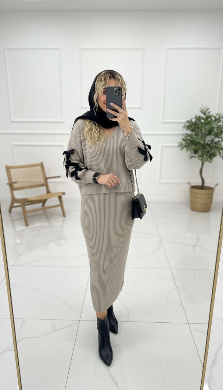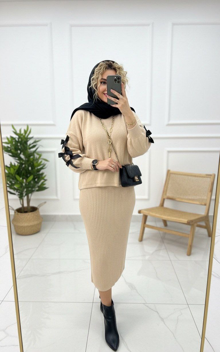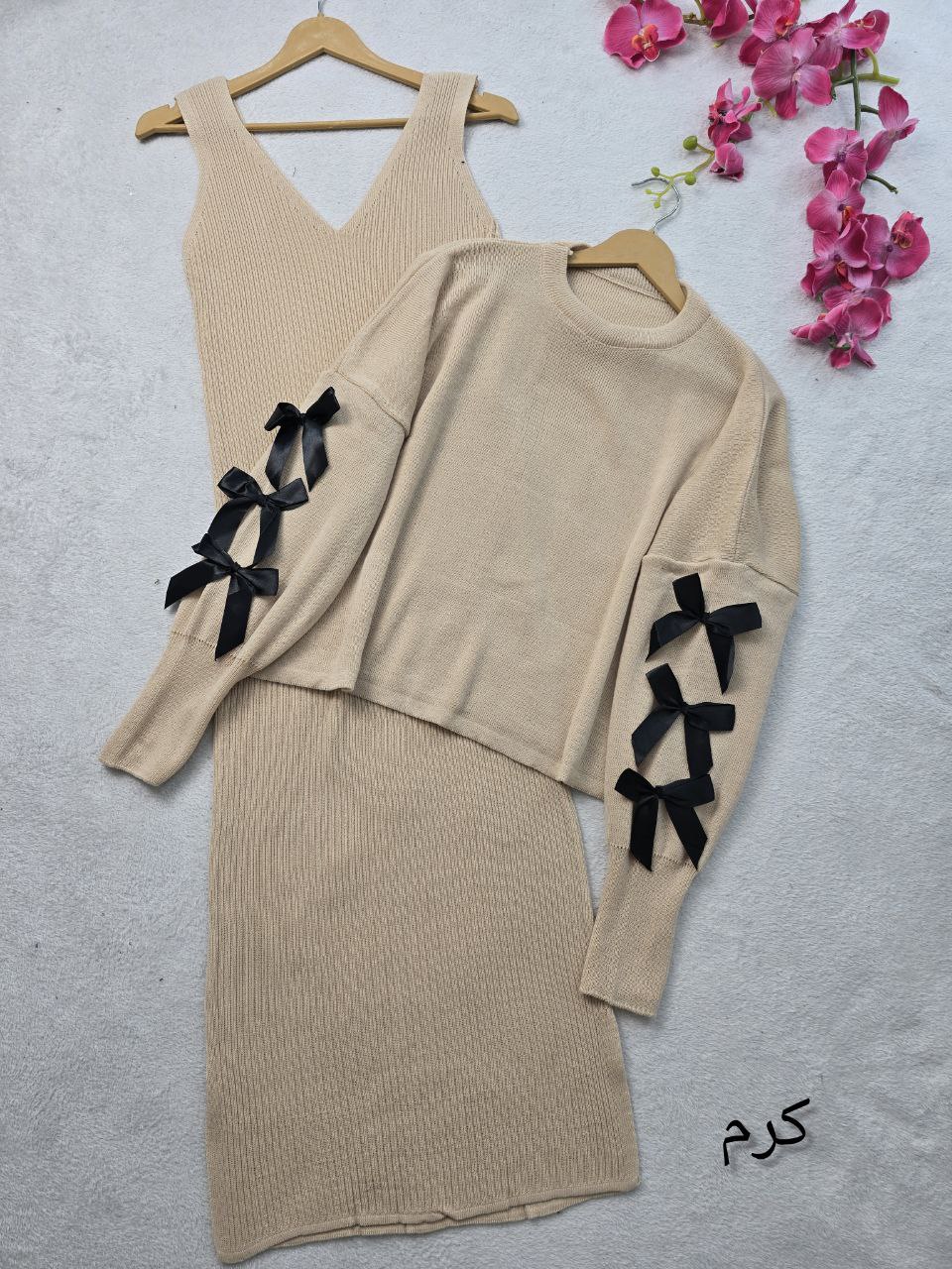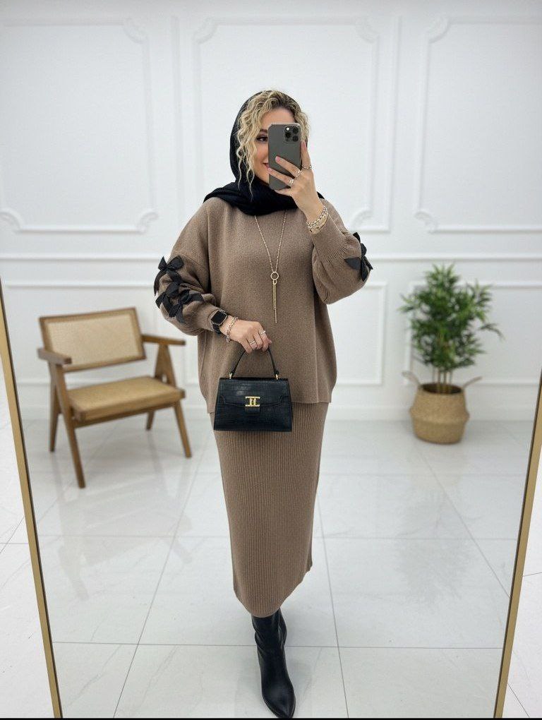ست بافت پینترستی شومیز و سارافون زنانه ، ست شومیز و سارافون پاییزه زنانه 🍁 شناسه : #95011🍁 نام : ست پروانه(آستین پاپیون)🍁 جنس : بافت دوبل🍁 رنگ بندی : خاکی, زرشکی, سورمه, کرم, مشکی, نسکافه🍁 سایز ها : فری 36-46قیمت : ۸۹۸۰۰۰ تومانقد رویه 55قد آستین از یقه 83دور سینه 162( حالت نیمه کیمانو)قد سارافون 125دو. سینه و باسن سارافون فول کش تا115 ✅ این ست دلبرمون از دل پینترست درومده ،پینترستی ترین ستی که دیدی اینه ، ست دو تکه سارافون و رویهلباس روشو میتونی حتی با شلوار یا دامن های دیگه هم بپوشی،به این میگن یه خرید اقتصادی😍
