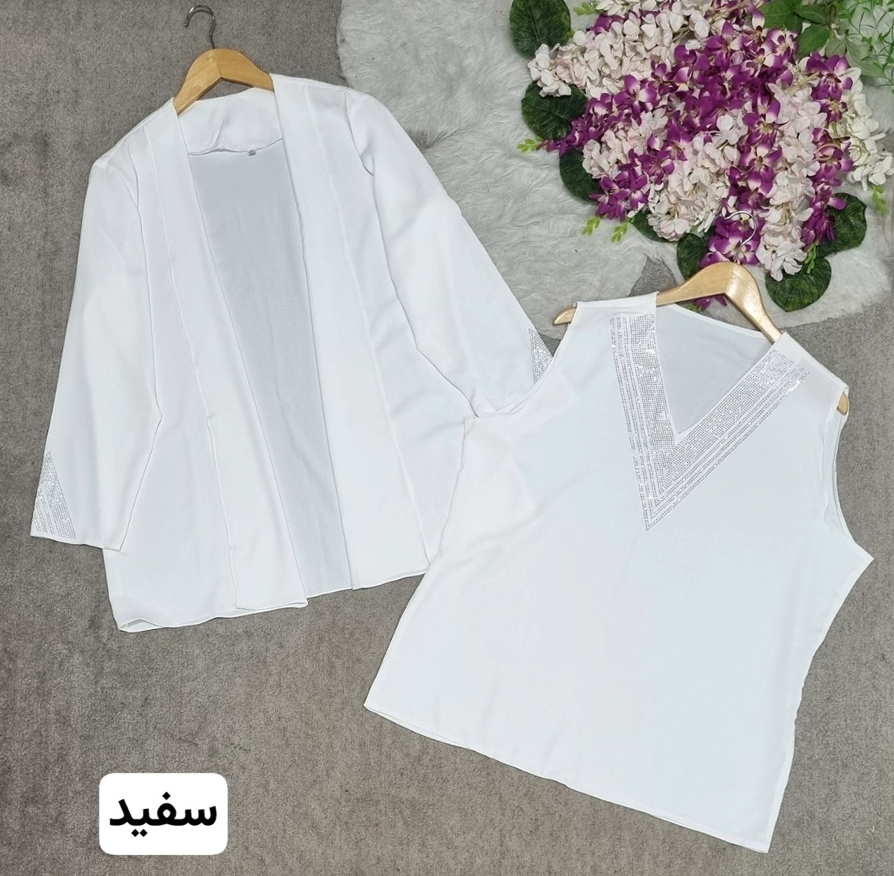 شناسه: #43705 نام: شومیز دوتیکه ماهرو سایز5 (فری40تا48)قد رویی 78دورسینه 114استین 70بازو 38قد زیری 70دورسینه 122سایز6 (46تا50)قد رویی 76دورسبنه 120استین 71بازو 42قد زیری 70دورسینه 1282تیکه شامل تاپ و رویی نگین کاری فوق العاده جنس الیزه درجه1🧵 جنس: الیزه درجه1🖌 رنگ بندی: سرخابی - سفید - مشکی - نسکافه - کاربنی - کرمی⚜️ سایز ها: سایز5 - سایز6💰 قیمت : ۷۸۵۰۰۰ تومان