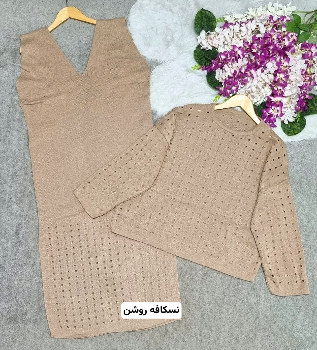 شناسه: #43696👚 نام: دو تیکه بافت ازیتا👗 قد سارافون 120دورسینه 116قد رویی 60دورسینه 128استین از کنار یقه 70بازو 40کشی و عالی🧵 جنس: بافت نرم و لطیف🖌 رنگ بندی: سبز - مشکی - نسکافه،تیره - نسکافه،روشن - یشمی⚜️ سایز ها: فری38تا52💰 قیمت : ۶۸۵۰۰۰ تومان