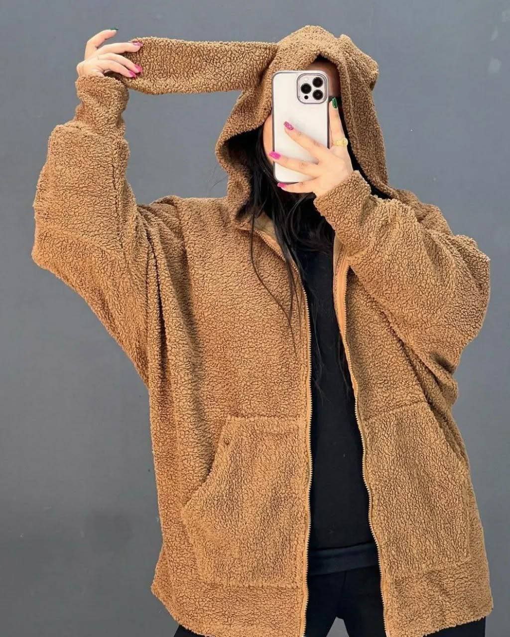 سوییشرت تدی زنانه ، هودی تدی زنانه ، هودی عروسکی ، سوییشرت عروسکی زنانه 🏷 شناسه: #43662👚 نام: سوییشرت تدی👗 قد جلو 78 پشت 87دورسینه 116استین از کنار یقه 70بازو 42جلو زیپ راحت و شیک🧵 جنس: تدی🖌 رنگ بندی: طوسی،تیره - طوسی،روشن - مشکی - نسکافه،تیره - نسکافه،روشن⚜️ سایز ها: فری38تا50💰 قیمت ۵۹۸۰۰۰