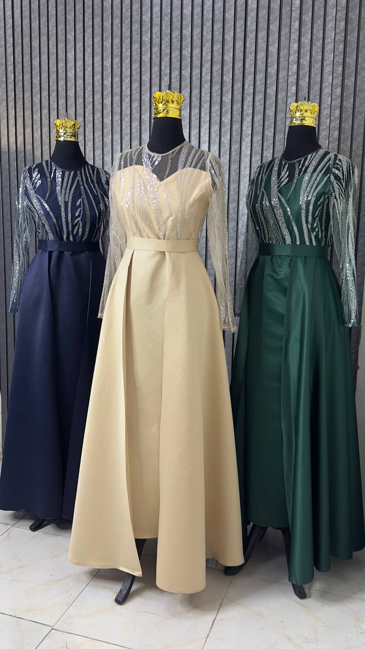 #️⃣شناسه کاربری : #9512🖋نام : ملودی👚جنس : تور تماماً منجوق دوزی و پولک دوزی دامن کار ساتن آمریکایی🌈رنگ بندی : سبز , سورمه-ای , کرم ,📏سایزها : 1(40-42) , 2(44-46) , 3(48-50) , 💰قیمت : ۲۳۴۸۰۰۰تومان📝توضیحات : ⚜ ⚜قد کار 170⚜بالاتنه آستردوزی⚜پشت کار زیپ میخورد ⚜کار اصلا کش نمیاد