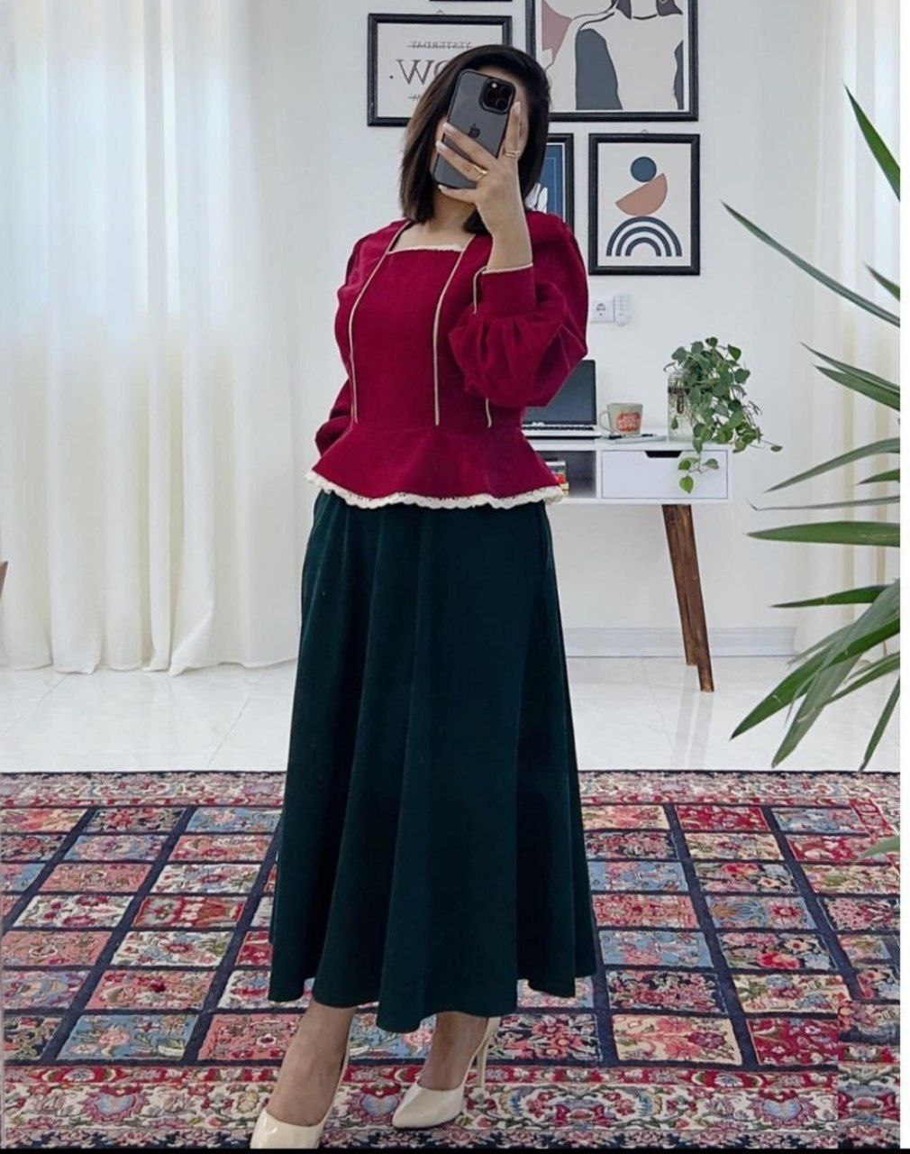 ست شومیز و دامن مجلسی زنانه ، ست شومیز مجلسی و دامن ، شناسه : #97661نام : شومیز و دامن رسپیناجنس : میکرو+داکرونرنگ بندی : قرمز و مشکیسایز ها : فری سایز تا 46قیمت : ۷۹۸۰۰۰۰ تومانقد شومیز 60دور سینه108قد آستین 57ارسال فوری با پست پیشتاز