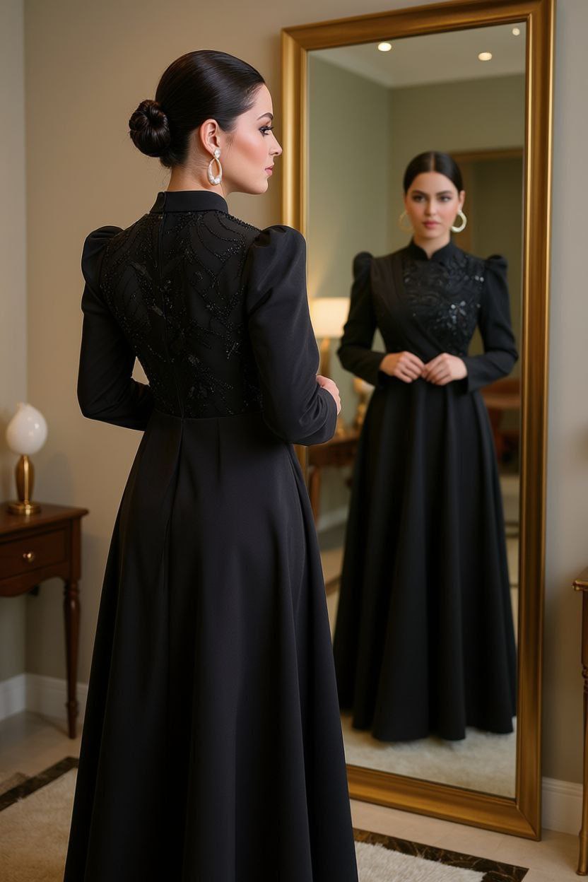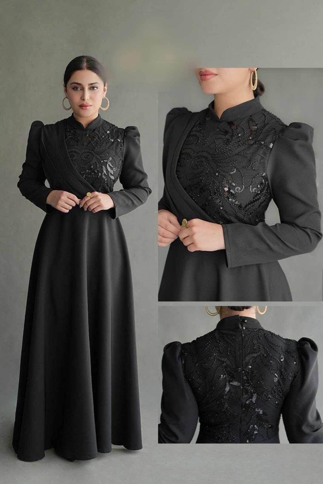 #️⃣شناسه کاربری : #9034🖋نام : الیزابت ❣👚جنس : مازراتی اعلا و دانتل مهره دوزی شده👌🌈رنگ بندی : مشکی , 📏سایزها : 40-42 , 44-46 , 48-50 , 💰قیمت : ۱۹۴۸۰۰۰ تومان📝توضیحات : قد کار 160یه کار مزونی و با کیفیت✅✅✅✅✅✅