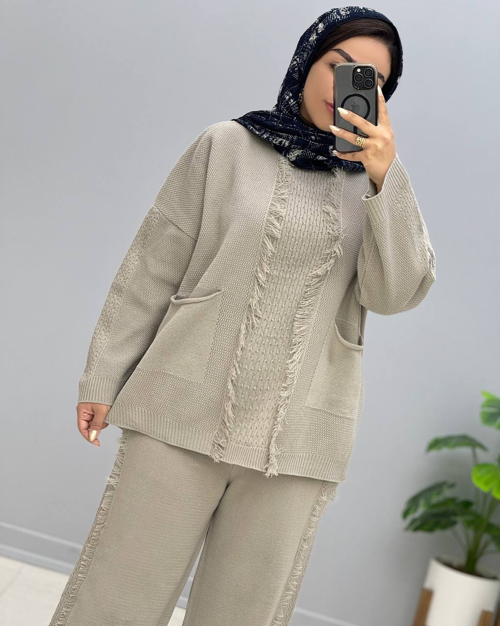 شناسه: #43710👚 نام: ست بافت رزا👗 قد 67دورسینه 150استین از کنار یقه 76بازو 46شلوار 105کشی و راحت شییییک🧵 جنس: بافت درجه1🖌 رنگ بندی: خاکی - مشکی - نسکافه⚜️ سایز ها: فری38تا54💰 قیمت : ۹۴۸۰۰۰ تومان