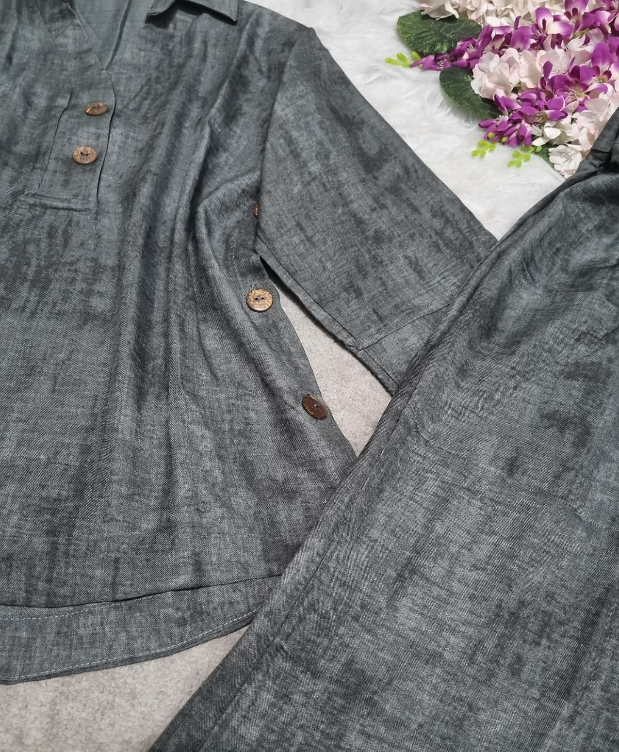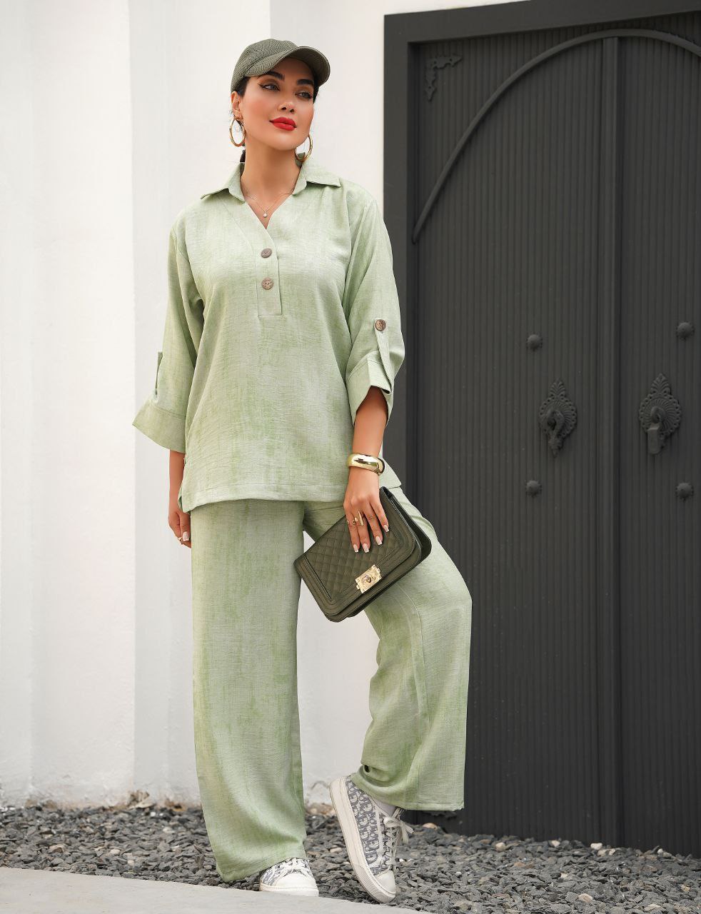شناسه: #43782👚 نام: ست گازوییلی مهتاب👗 قد 75دورسینه 114استین از کنار یقه 60بازو 50شلوار 104ران 64شلوار جلو زیپ دکمه👌دکمه بغل لباس باز میشه 👌استین ها جمع میشه🧵 جنس: شانتون درجه1🖌 رنگ بندی: ابی - استخونی - سبز - سورمه - طوسی - مشکی - نسکافه⚜️ سایز ها: فری36تا48💰قیمت : ۷۴۸۰۰۰ تومان