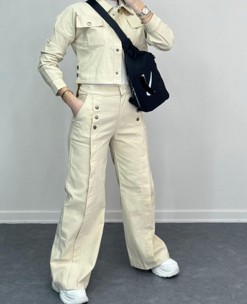 شناسه: #43579👚 نام: ست تیارا👗 قد جلو 50 پشت 58دورسینه 110استین از کنار یقه 71بازو 42شلوار100کشی و راحت🧵 جنس: کتان بنگال🖌 رنگ بندی: سدری - مشکی - نسکافه،تیره - نسکافه،روشن - کرمی⚜️ سایز ها: فری36تا46💰 قیمت : ۶۴۸۰۰۰ تومان