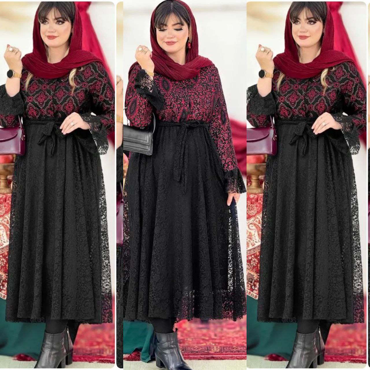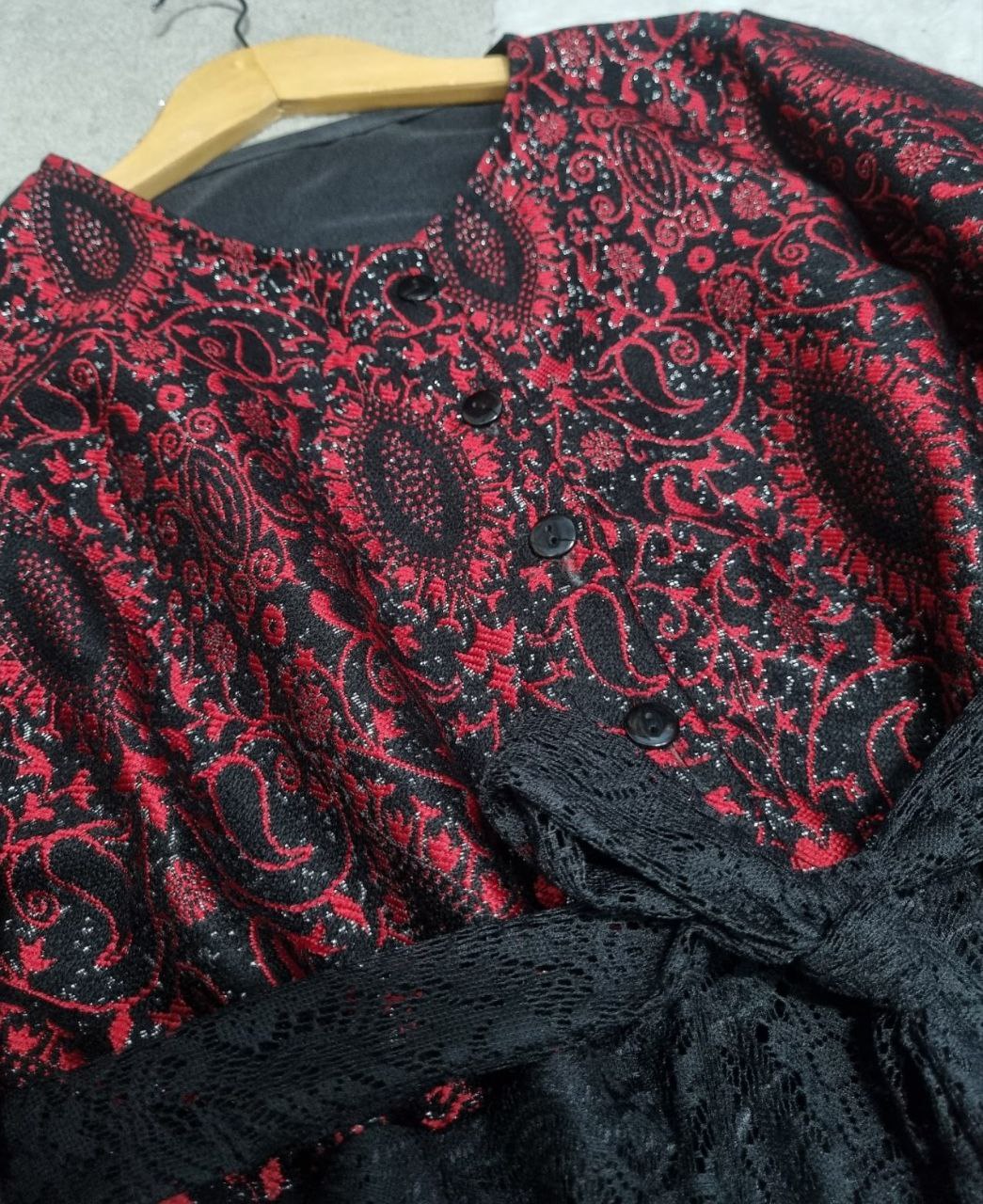 شناسه: #43788👚 نام: مدل ارزو👗 قد 126دورسینه 104استین از کنار یقه72بازو 36جلو دکمه🧵 جنس: دانتل و سوزن دوزی🖌 رنگ بندی: طرح1 - طرح2⚜️ سایز ها: فری36تا46💰 قیمت : ۸۹۸۰۰۰ تومان