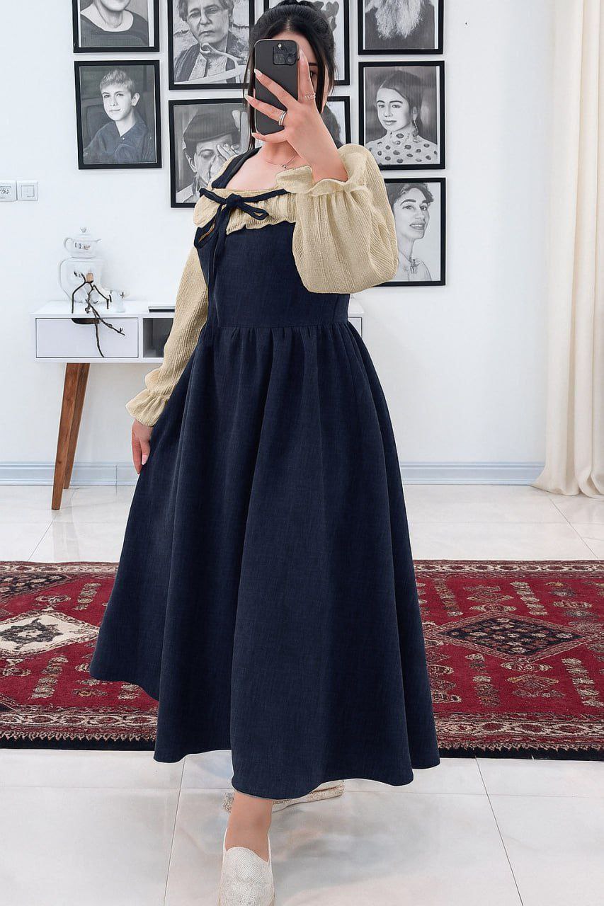 شناسه : #94330👚نام : پیراهن ترانه💖🧶جنس : شانتون و مراکشی💖رنگ بندی : بنتون, صدری- سورمه ای, طوسی, مشکی💖👭سایز ها : فری سایز تا 46💖💰💳قیمت : ۸۴۸۰۰۰ تومان💖🤩قد سارافون حدودا140🤩قد آستین 58🤩دور سینه 108👌کمربند دار جهت تنظیم سایز کمر🤩دامن کلوش و چین دار 🔹ارسال 5آذر🔹خرجکار یقه و آستین رنگ استخوانی و کرم روشنه رندوم میره🔹