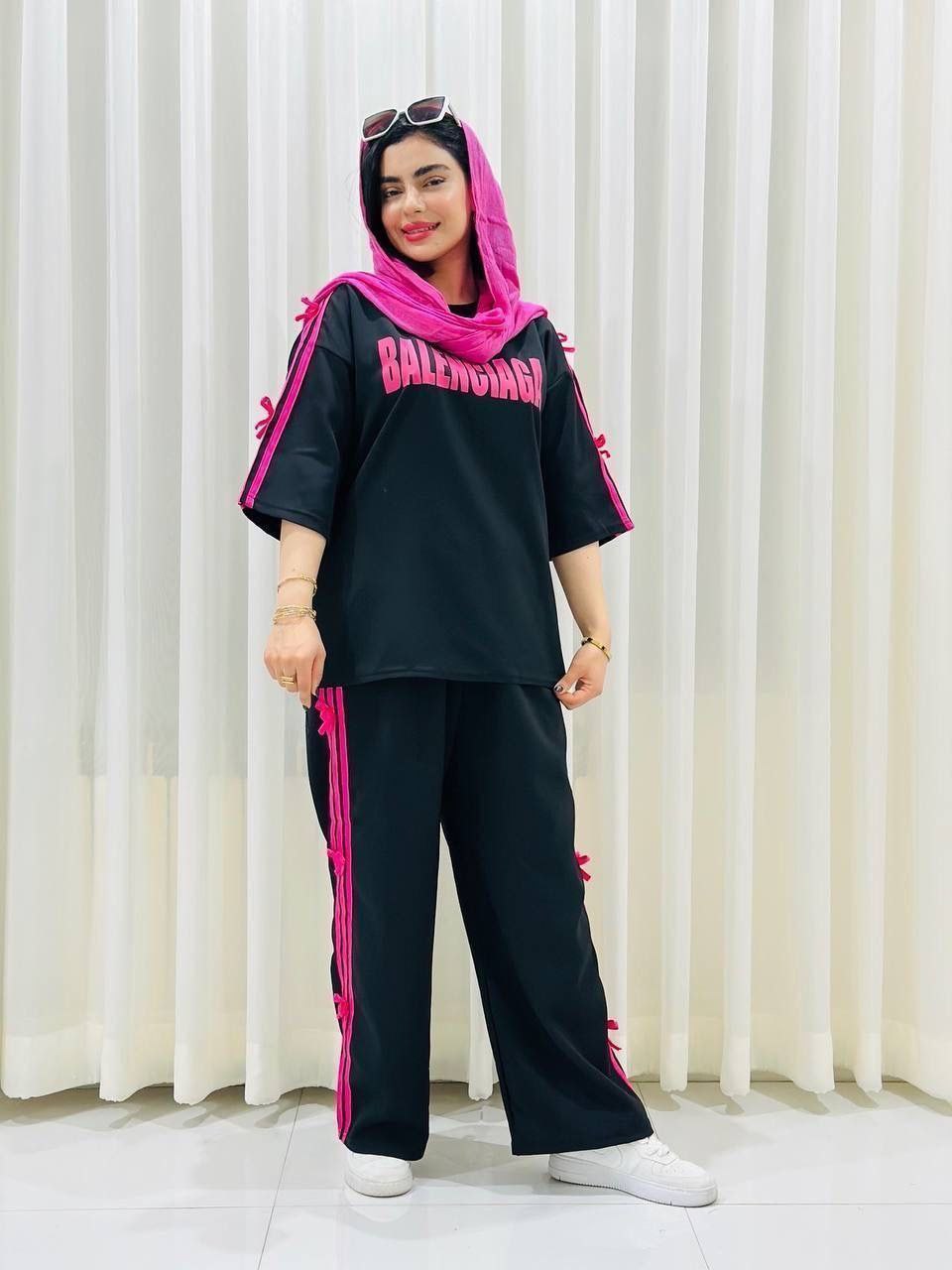 ❣شناسه : #93255❣نام : مدل پاتریک❣جنس : اسپان پنبه گلکسی ❣رنگ بندی : مشکی صورتی❣سایز ها : فری 38/48❣قیمت : ۵۹۸۰۰۰ تومان🌹قد تیشرت حدود 68 سانت 🌹دور سینه حدود ۱۱۰ سانت🌹قد آستین از سرشانه حدود ۳۰ سانت🌹قد شلوار حدود ۱۰۳ سانت🌹دور ران حدود ۶۰ سانت🌹دمپا حدود ۳۰ سانت✅️پارچه کش میباشد⭕️ارسال فوووورررری