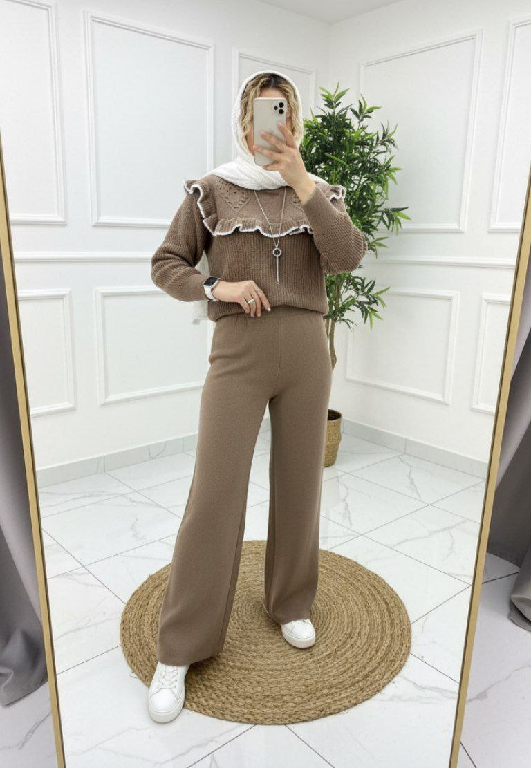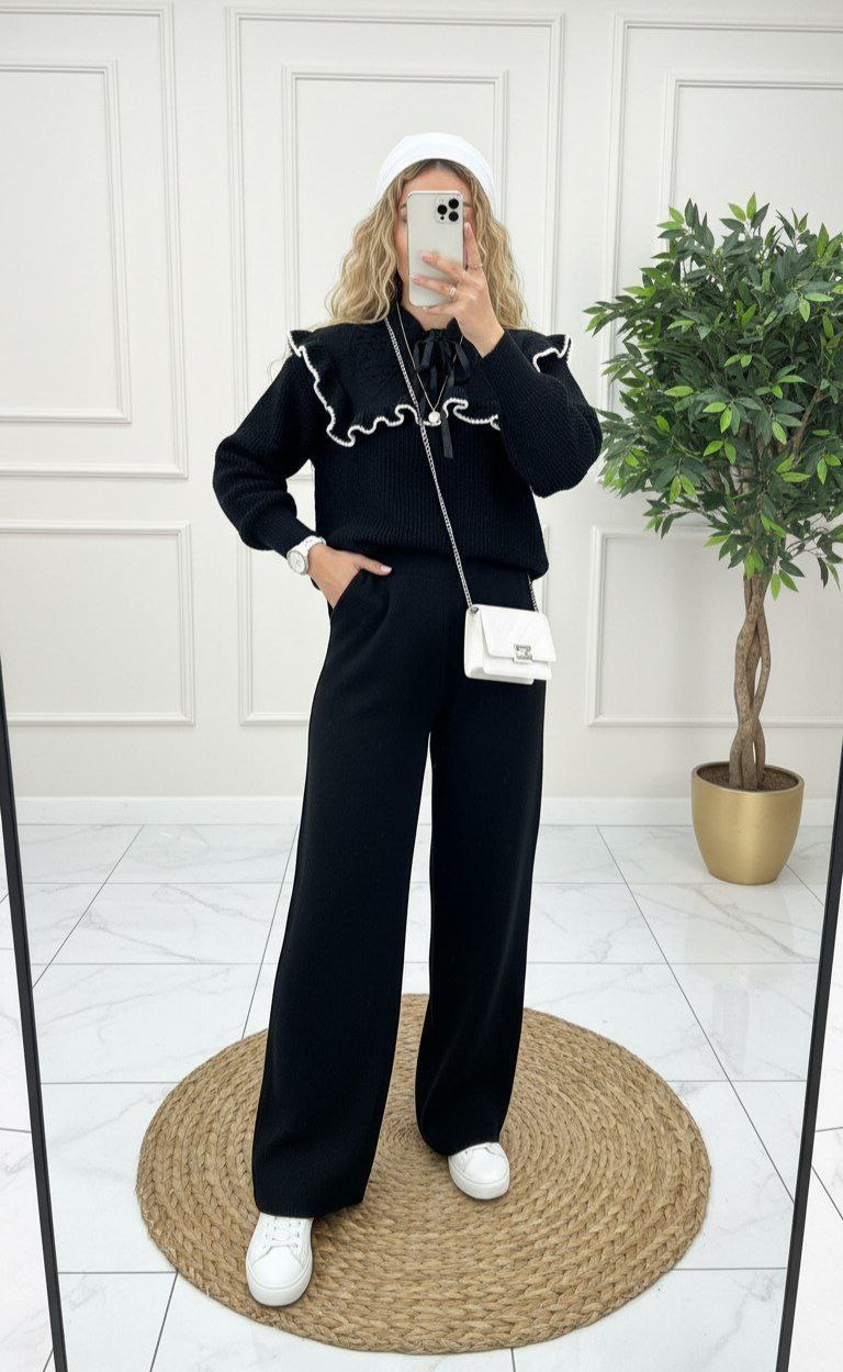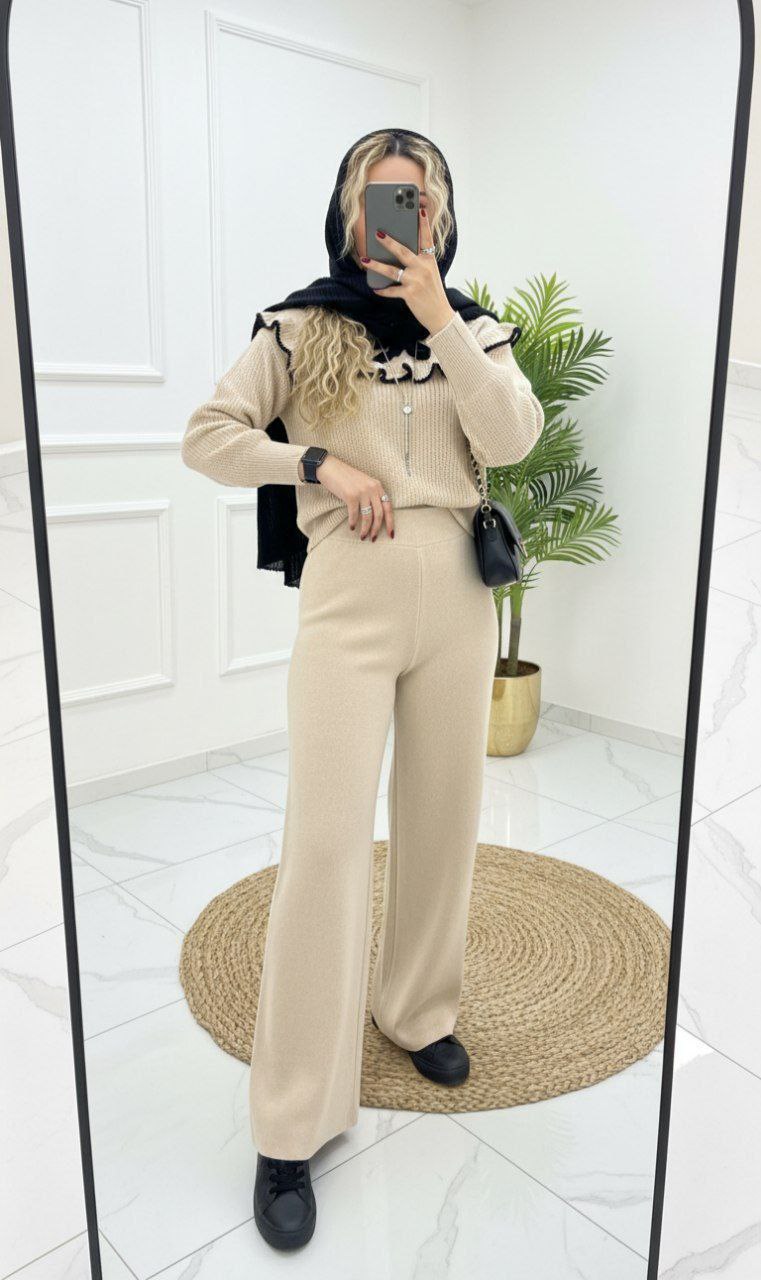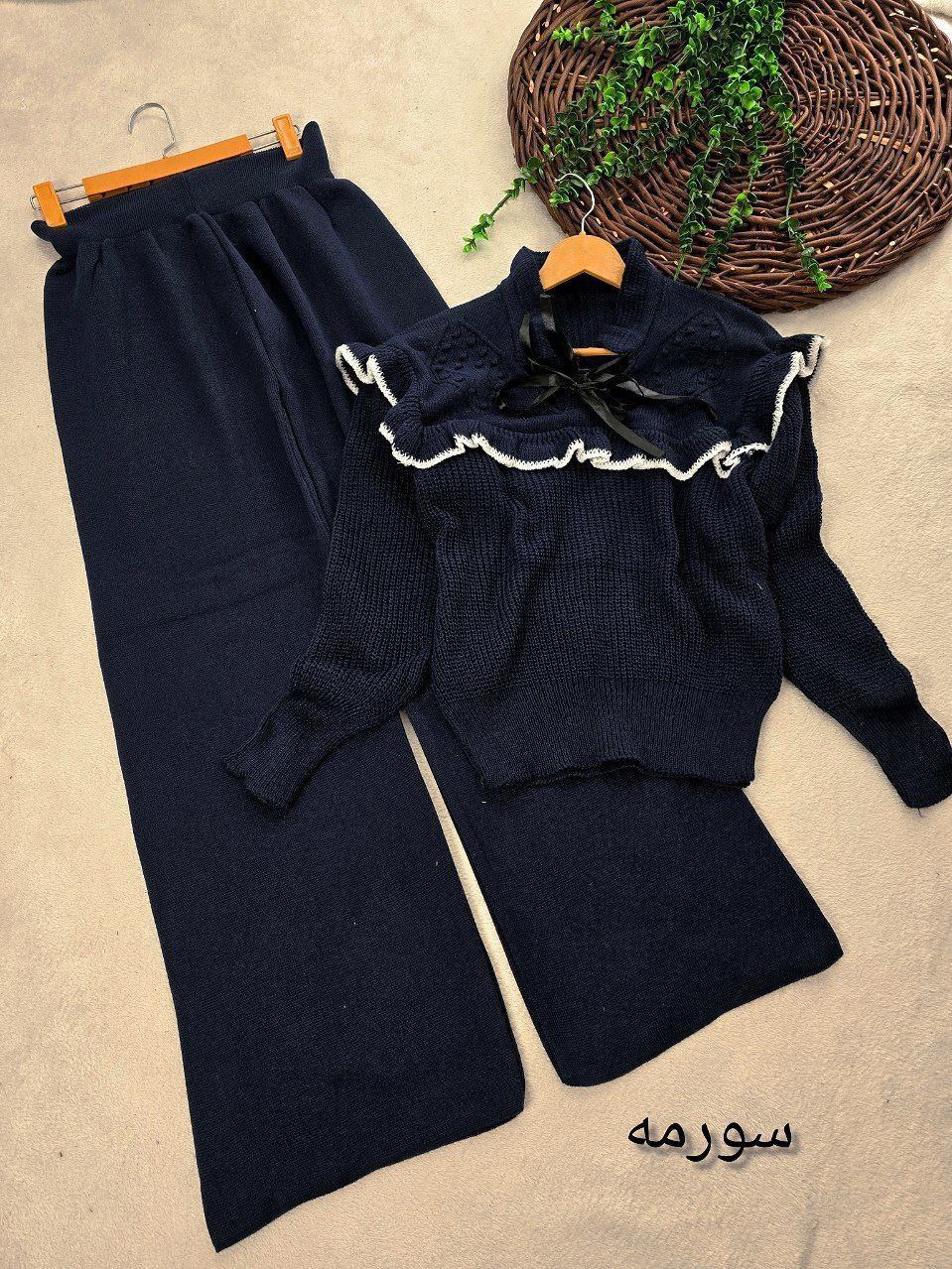 شناسه : #95153نام : ست رز(یقه ربان دار)جنس : بافت دوبل رنگ بندی : سورمه, کرم, مشکی, نسکافه سایز ها : فری 36-44/46قیمت : ۷۹۸۰۰۰ تومان قد لباس 60دور سینه لباس بدون کشسان 105قد استین61قد شلوار 105دور ران بدون کشسان 62✅بافت فول کشسان داره